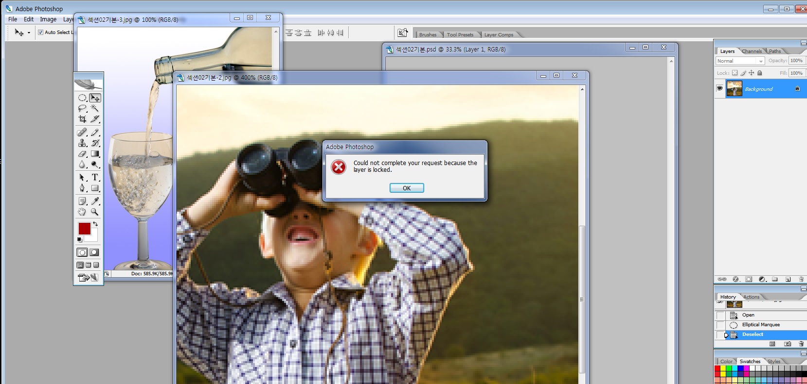 '.....layer is locked' 에러 메시지가 뜹니다.