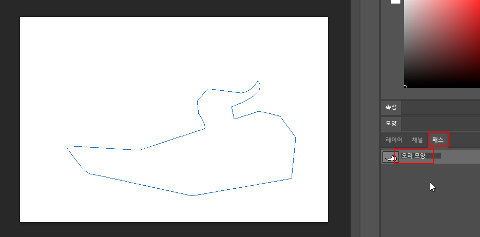 3. 패스 패널에서 작성된 오리 모양의 패스를 더블클릭한 후 패스 이름을 '오리모양'으로 입력한 후 [Enter]를 누르세요.