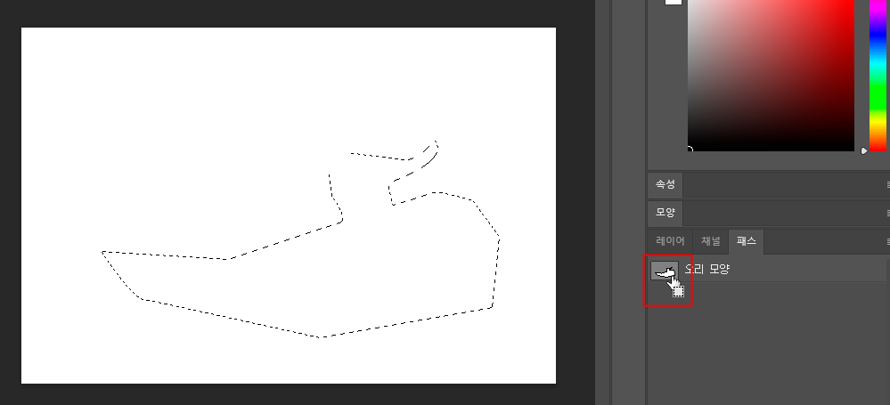 4. [Ctrl]을 누른채 작성되 패스의 썸네일 부분을 클릭하면, 패스가 선택 영역으로 지정됩니다.