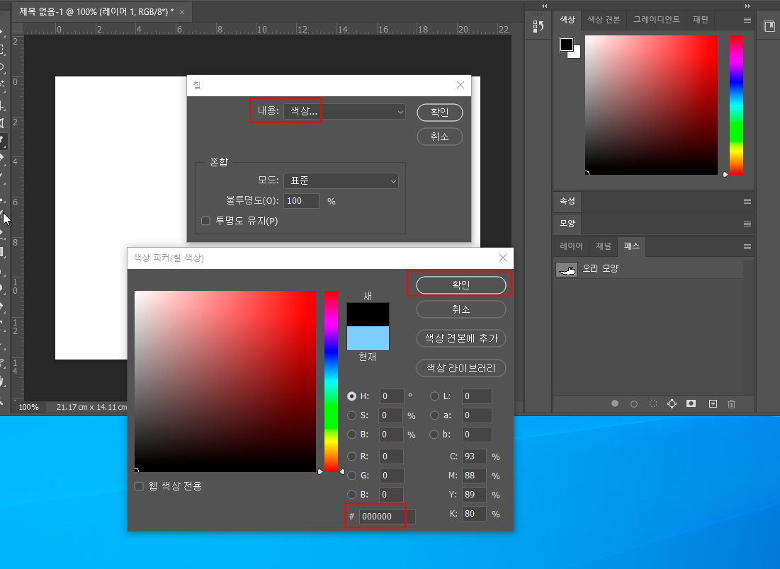 5. 패스가 선택된 상태에서 [Shift]+[F5]를 누르면 '칠' 대화상자가 표시됩니다.