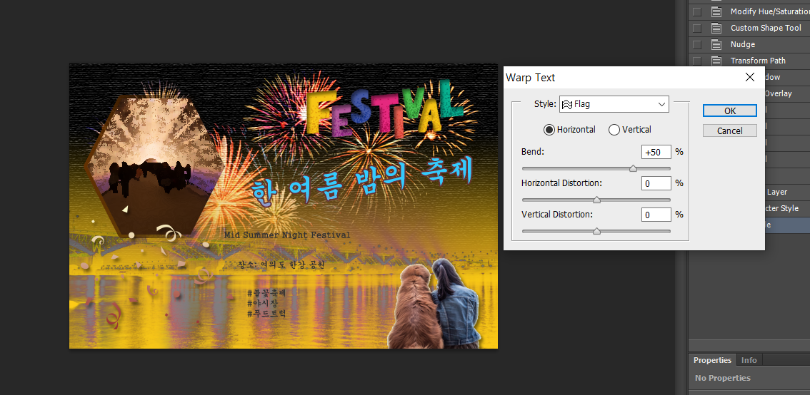 "한 여름 밤의 축제" 텍스트 뒤틀기 답이 Rise로 되어있는데 Flag로 해도 비슷한데 이걸로 해도되나요 ?