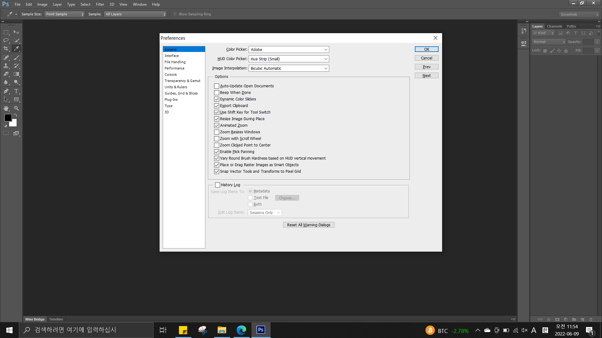 CS6에서는 이미지 크기 조정 시 기본적으로 가로, 세로 비율이 고정된 상태로 조정되므로, ‘Preferences(환경 설정)’ 대화상자에 ‘Use Legacy Free Transform(레거시 자유 변형 사용)’ 항목이 없습니다.