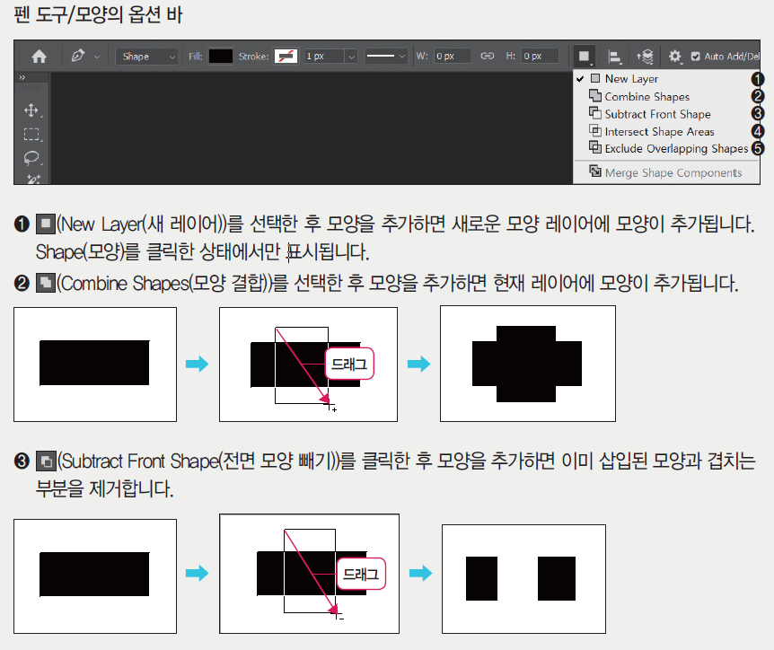 포토샵 2022 옵션바에 shape layers가 없어요