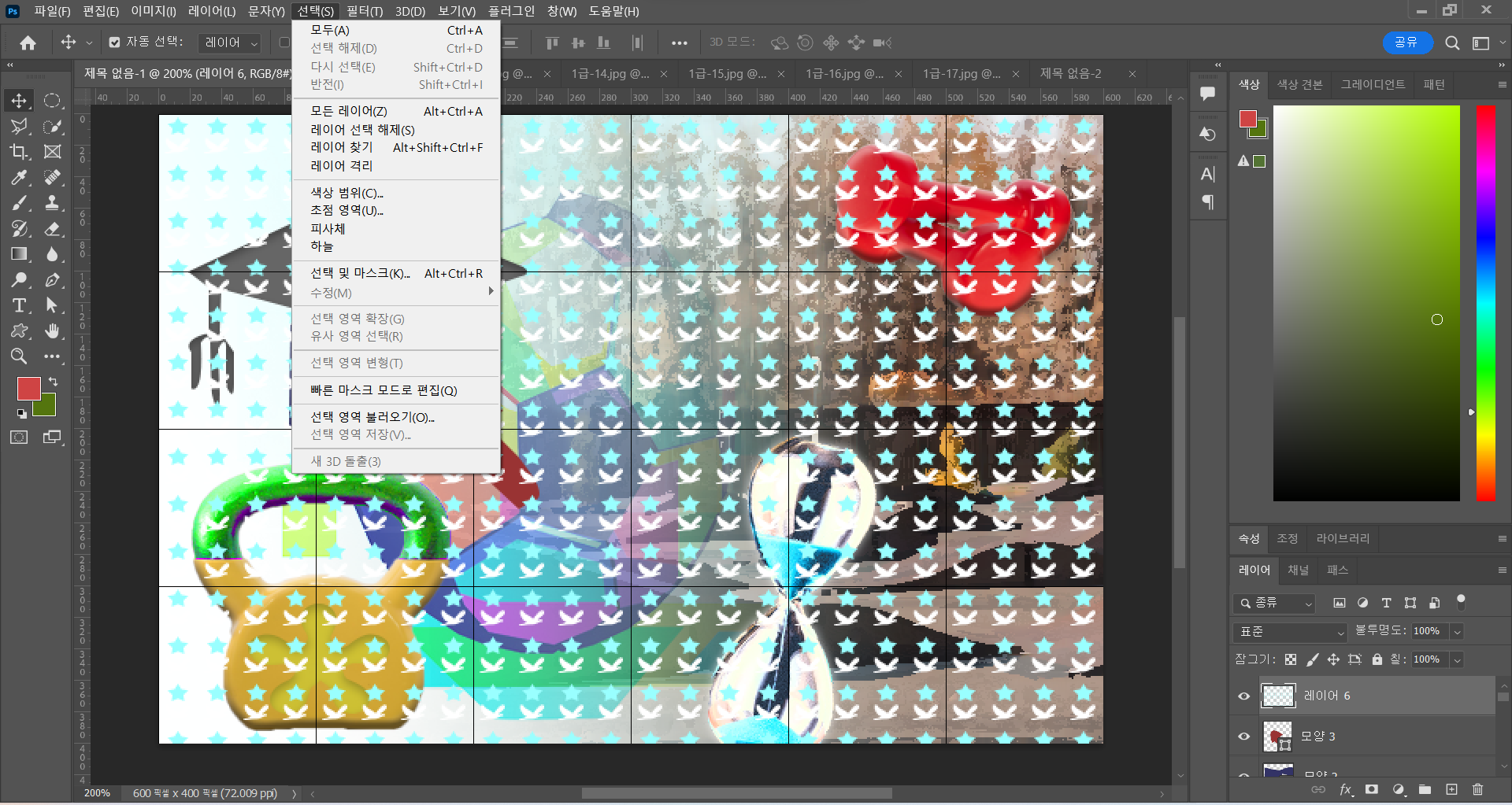 불편하시더라도 작업하신 PSD 파일을 저장한 후 첨부해 주시면